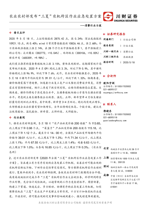 【川财证券】【20200518】消费行业日报:农业农村部发布“三夏”农机跨区作业应急处置方案-3页