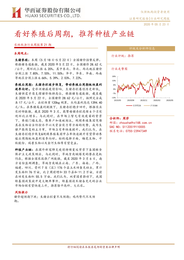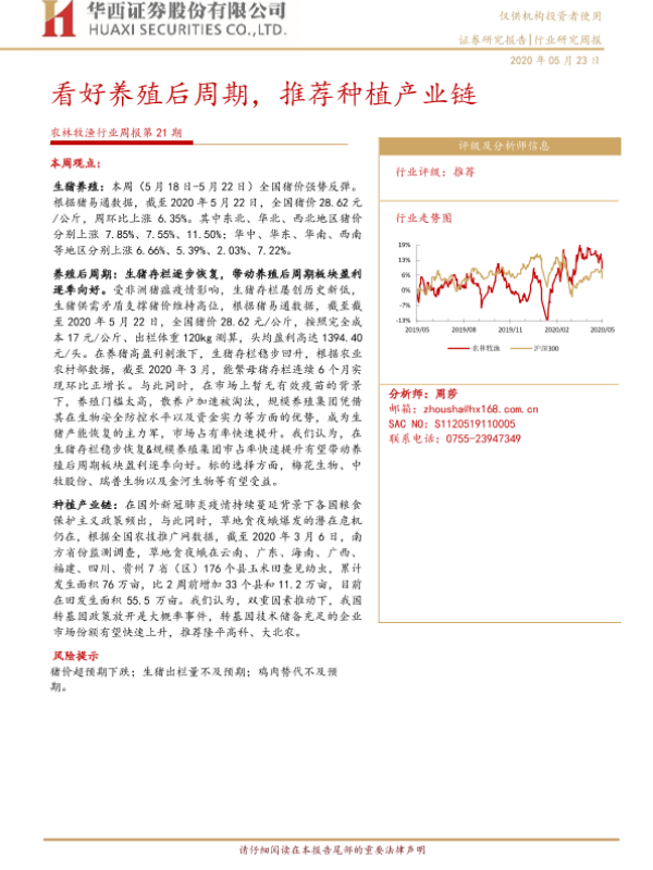【华西证券】【20200523】20200523-华西证券-农林牧渔行业周报第21期:看好养殖后周期,推荐种植产业链-21页