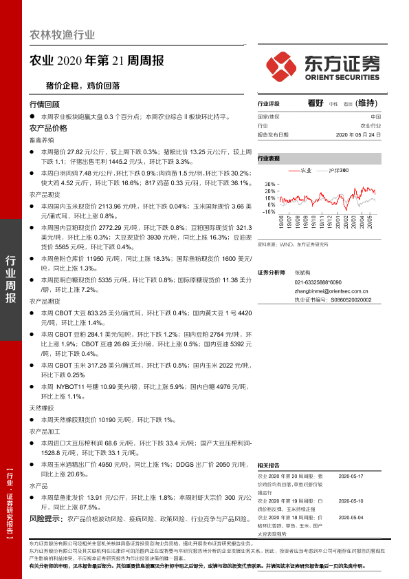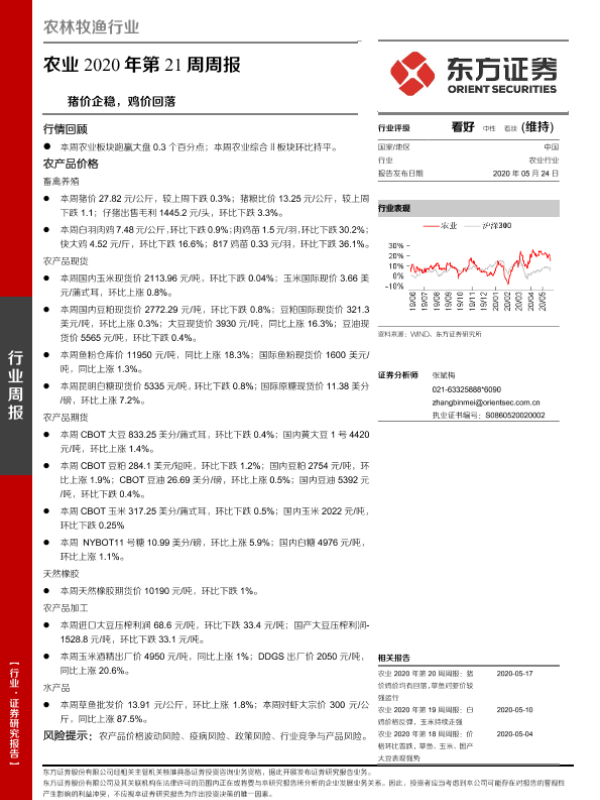 【东方证券】【20200524】农业2020年第21周周报:猪价企稳,鸡价回落-17页