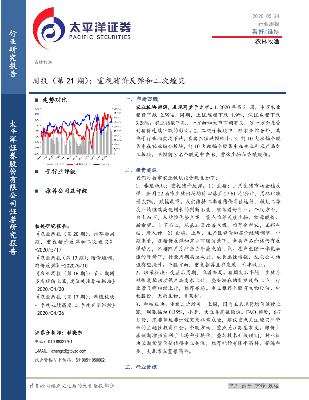 【太平洋证券】【20200524】20200524-太平洋-农林牧渔周报(第21期):重视猪价反弹和二次蝗灾-15页