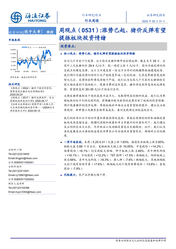 【海通证券】【20200531】20200531-海通证券-农业周观点:涨势已起,猪价反弹有望提振板块投资情绪-4页
