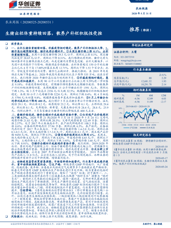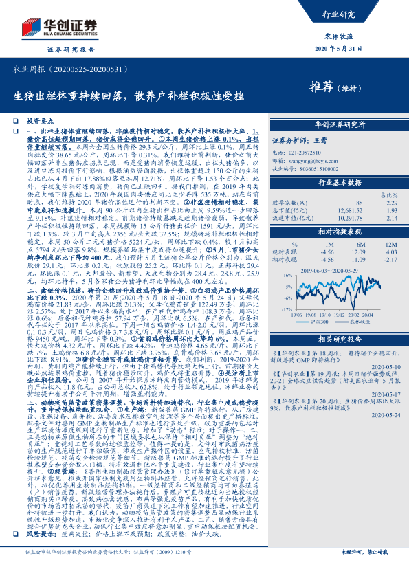 【华创证券】【20200531】20200531-华创证券-农业周报:生猪出栏体重持续回落,散养户补栏积极性受挫-45页
