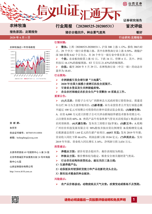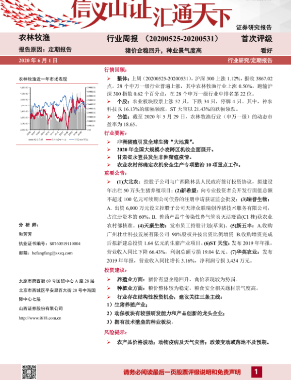 【山西证券】【20200601】20200601-山西证券-农林牧渔行业周报:猪价企稳回升,种业景气度高-13页
