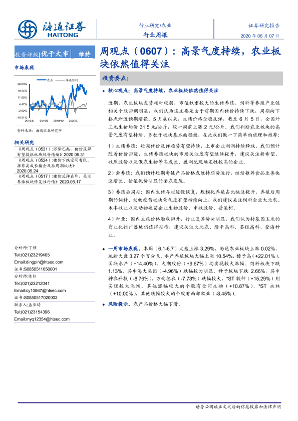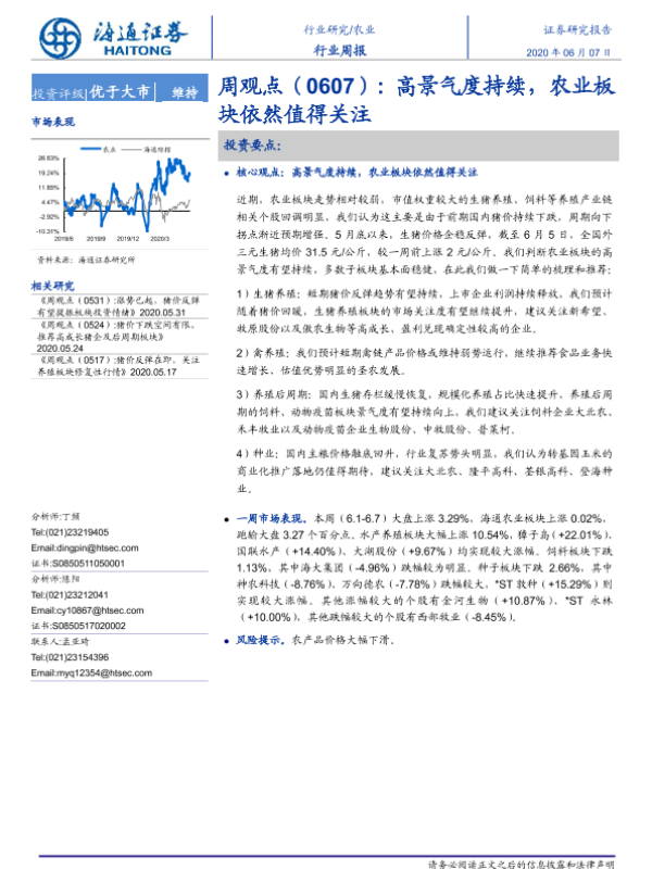 【海通证券】【20200607】20200607-海通证券-农业周观点:高景气度持续,农业板块依然值得关注-4页