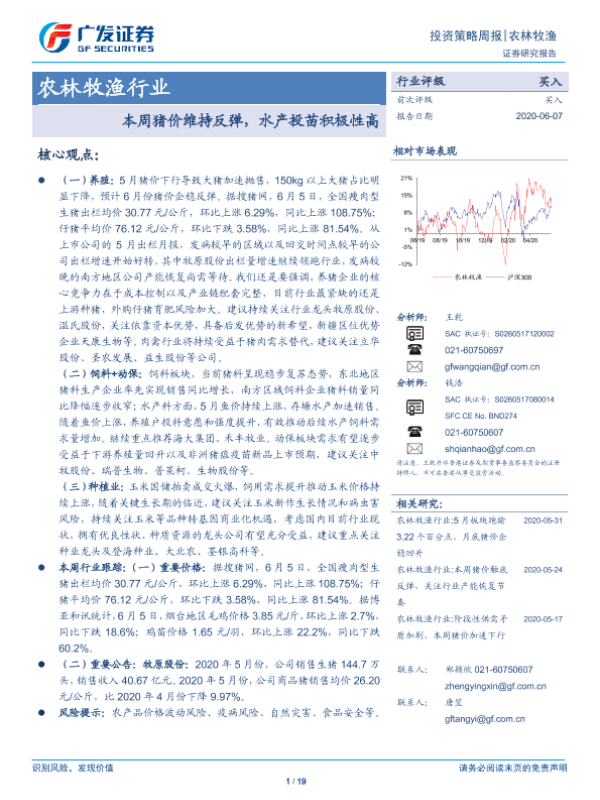 【广发证券】【20200607】20200607-广发证券-农林牧渔行业投资策略周报:本周猪价维持反弹,水产投苗积极性高-19页