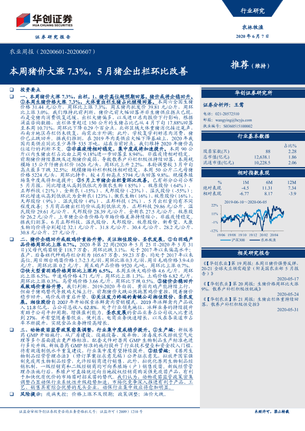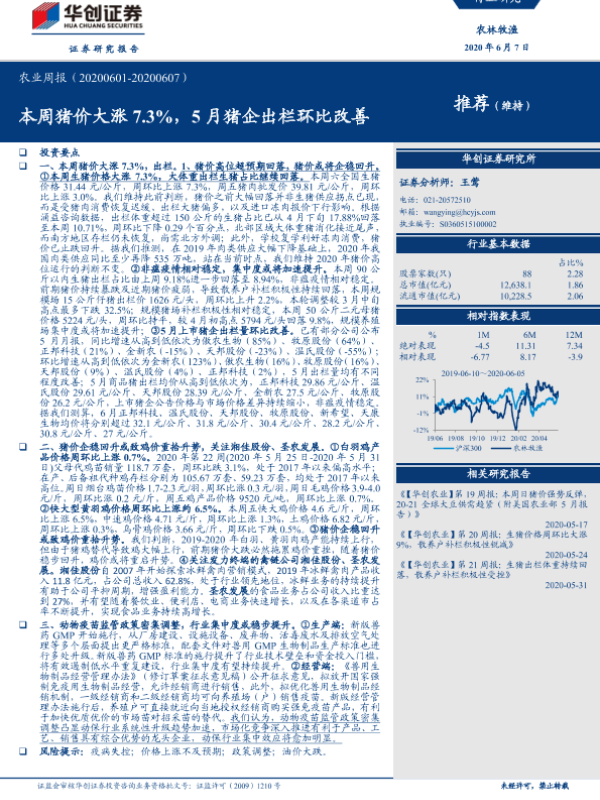 【华创证券】【20200607】20200607-华创证券-农业周报:本周猪价大涨7.3%,5月猪企出栏环比改善-44页