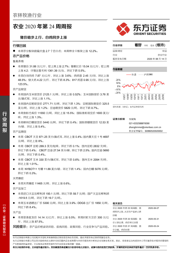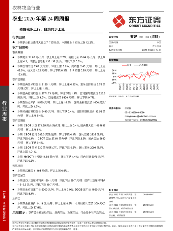 【东方证券】【20200614】农业2020年第24周周报:猪价稳步上行,白鸡同步上涨-16页