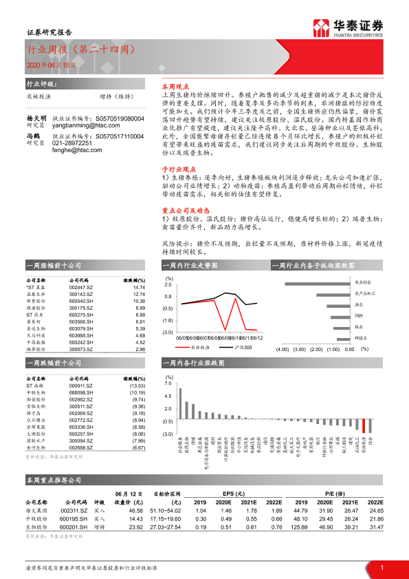 【华泰证券】【20200615】20200615-华泰证券-农林牧渔行业周报(第二十四周)-13页