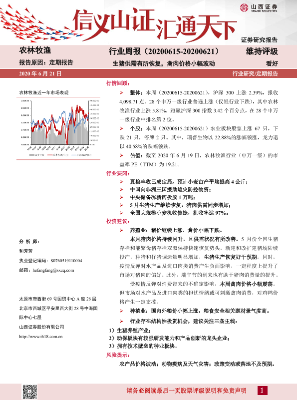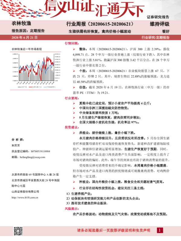 【山西证券】【20200621】20200621-山西证券-农林牧渔行业周报:生猪供需有所恢复,禽肉价格小幅波动-14页