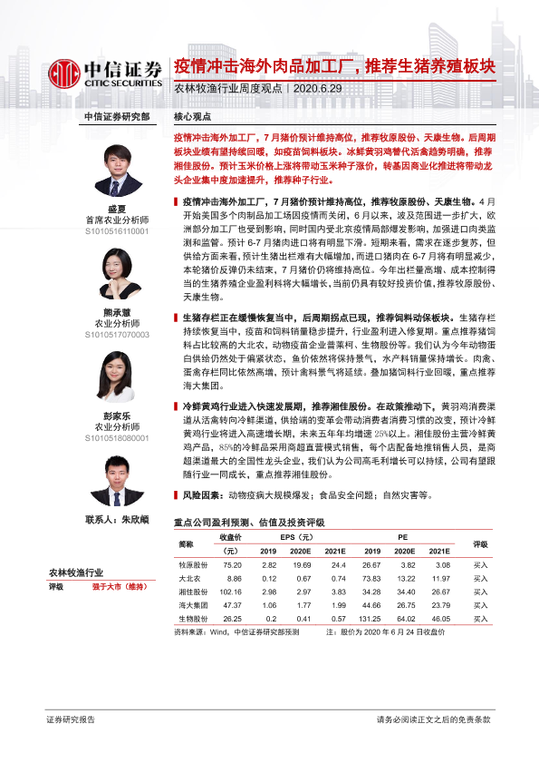 【中信证券】【20200629】农林牧渔行业周度观点:疫情冲击海外肉品加工厂,推荐生猪养殖板块-10页