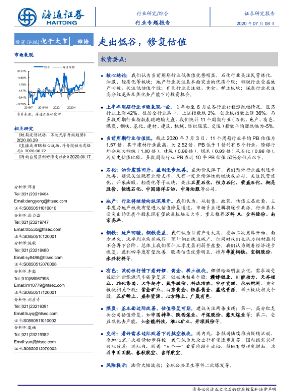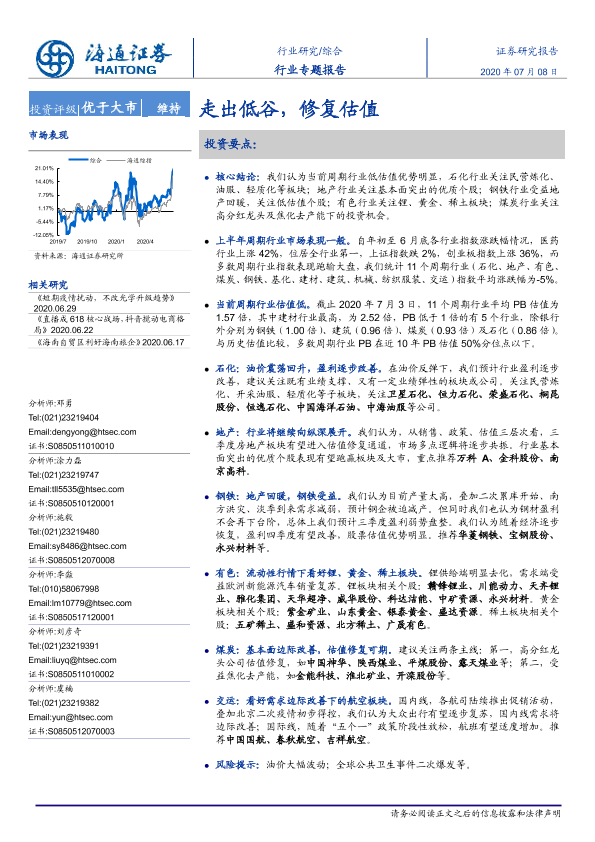 【海通证券】【20200708】综合行业专题报告:走出低谷,修复估值-21页