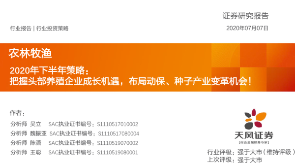 【天风证券】【20200707】2020年下半年策略:把握头部养殖企业成长机遇,布局动保、种子产业变革机会!-39页