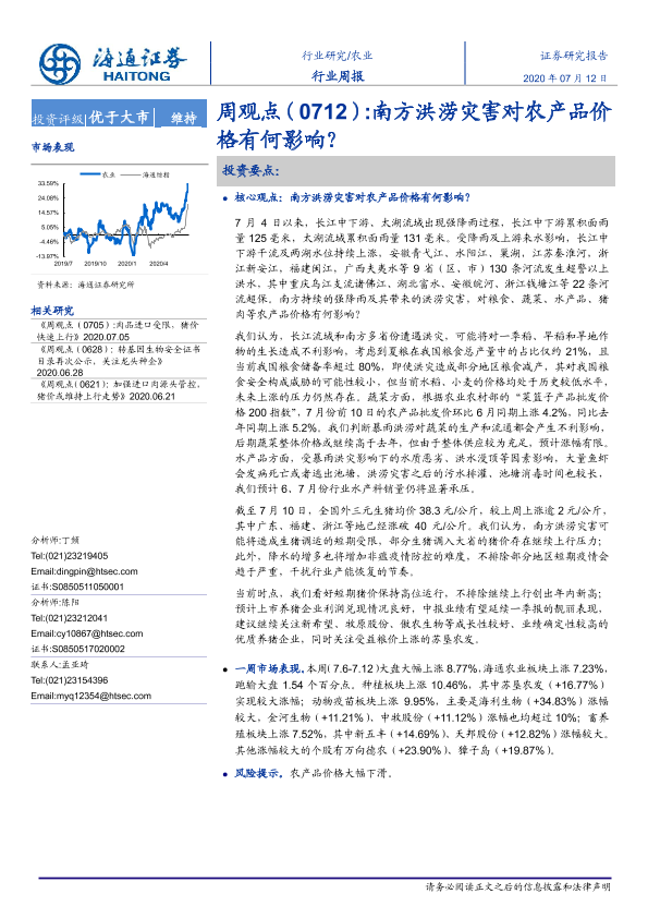 【海通证券】【20200712】20200712-海通证券-农业周观点:南方洪涝灾害对农产品价格有何影响?-4页