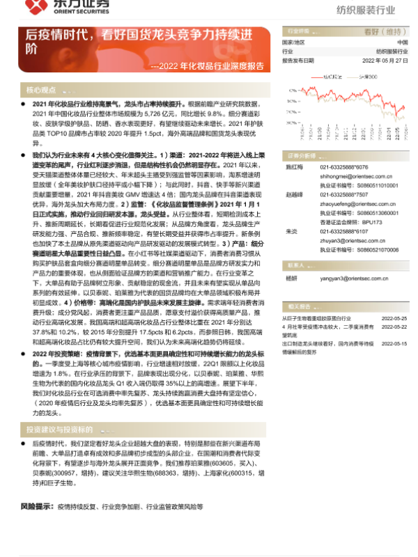 【东方证券】【20220527】2022年化妆品行业深度报告:后疫情时代,看好国货龙头竞争力持续进阶-22页