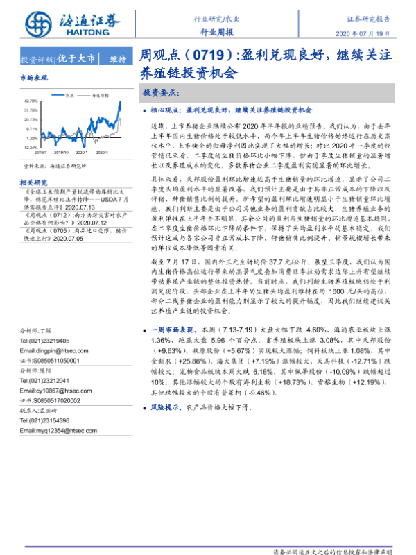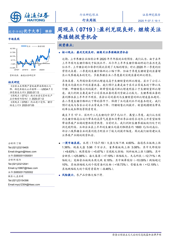 【海通证券】【20200719】20200719-海通证券-农业周观点:盈利兑现良好,继续关注养殖链投资机会-4页