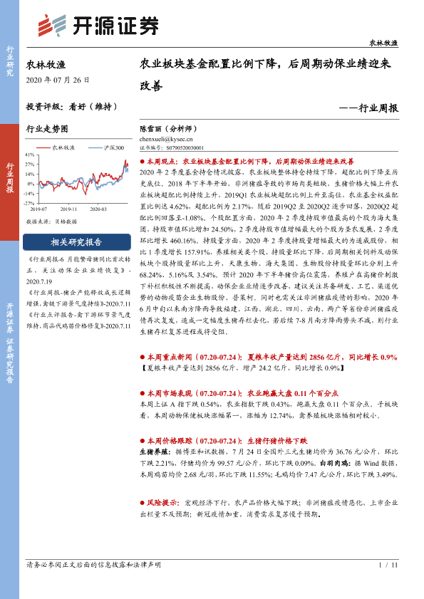 【开源证券】【20200726】农林牧渔行业周报:农业板块基金配置比例下降,后周期动保业绩迎来改善-11页