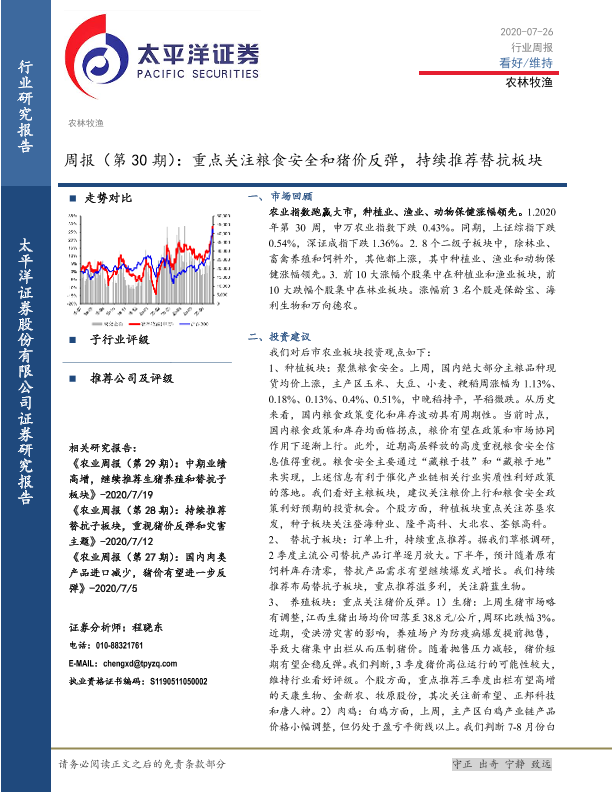 【太平洋证券】【20200726】农林牧渔周报(第30期):重点关注粮食安全和猪价反弹,持续推荐替抗板块-15页