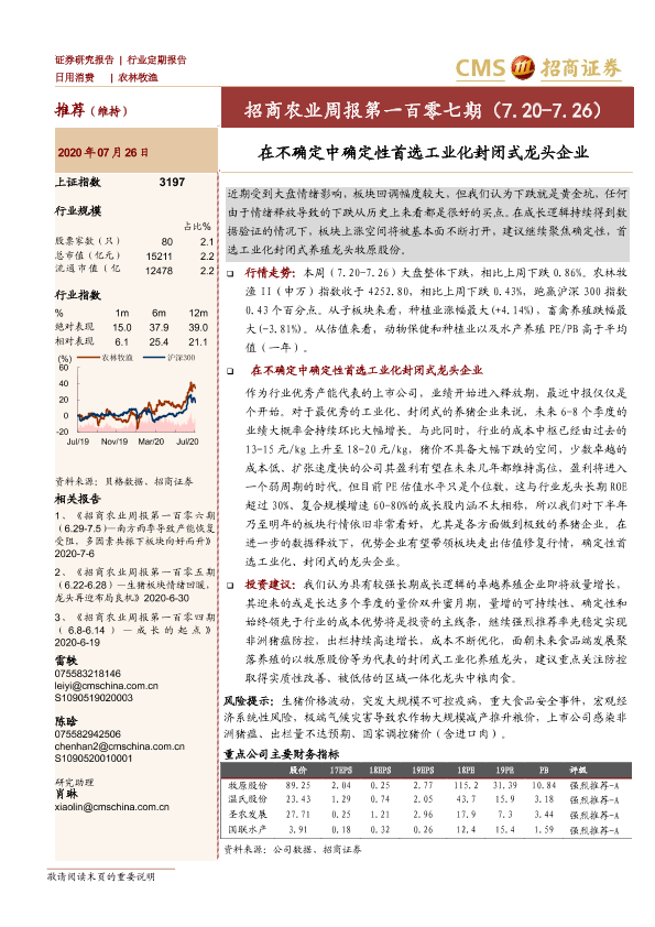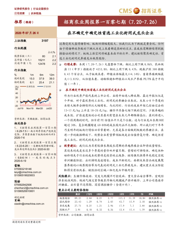 【海通证券】【20200726】招商农业周报第一百零七期:在不确定中确定性首选工业化封闭式龙头企业-27页