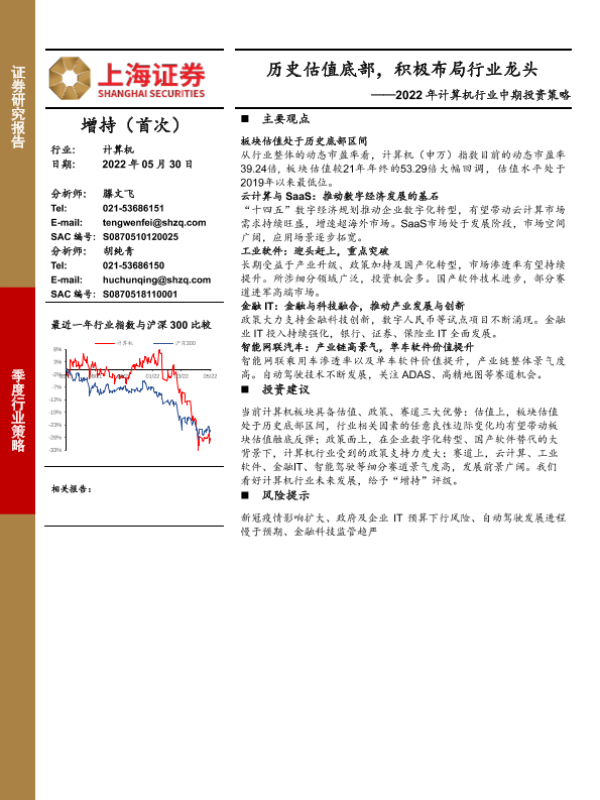【上海证券】【20220530】2022年计算机行业中期投资策略:历史估值底部,积极布局行业龙头-32页