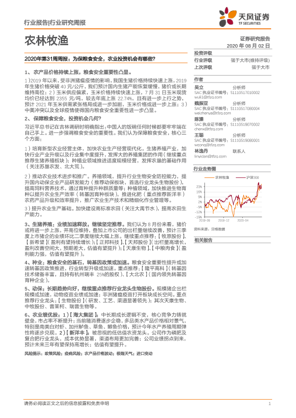 【天风证券】【20200802】2020年第31周周报:为保粮食安全,农业投资机会有哪些?-15页