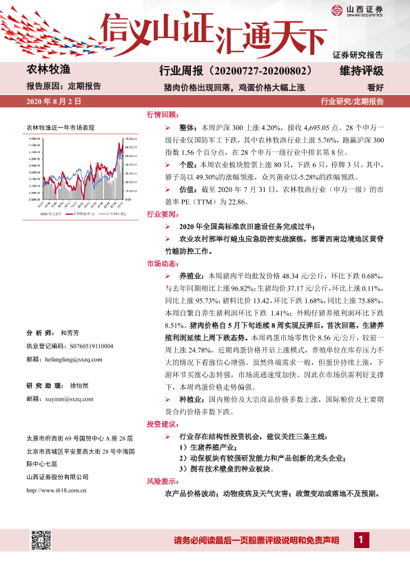【山西证券】【20200802】20200802-山西证券-农业牧渔行业周报:猪肉价格出现回落,鸡蛋价格大幅上涨-13页