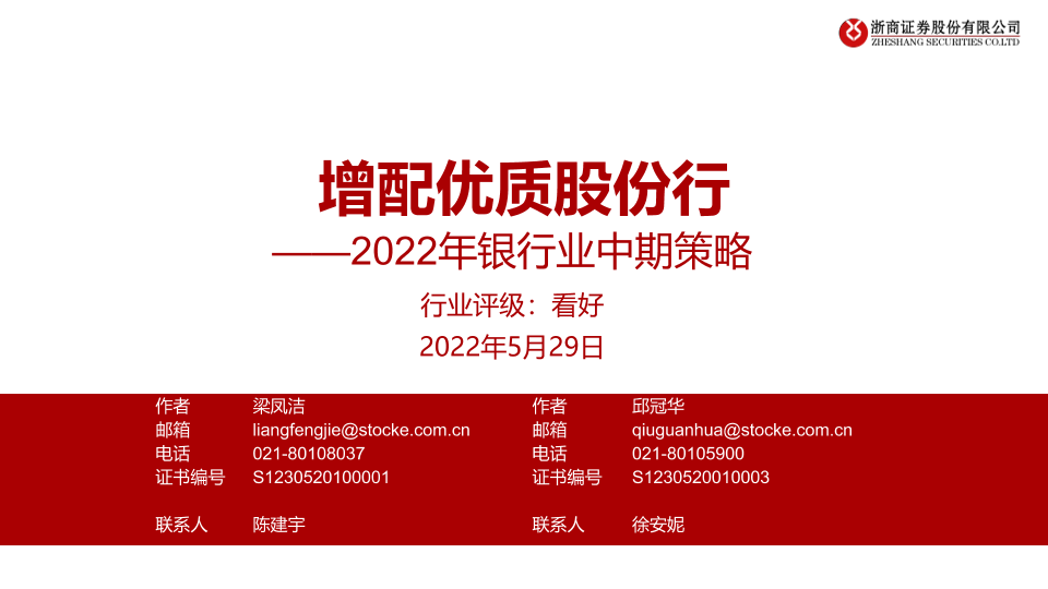 【浙商证券】【20220529】2022年银行业中期策略:增配优质股份行-24页