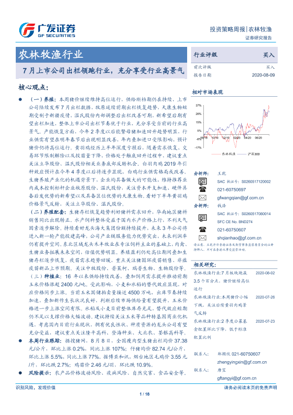 【广发证券】【20200809】20200809-广发证券-农林牧渔行业:7月上市公司出栏领跑行业,充分享受行业高景气-18页