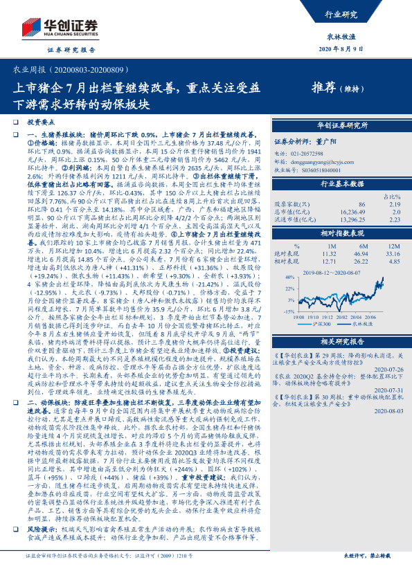 【华创证券】【20200809】20200809-华创证券-农业周报:上市猪企7月出栏量继续改善,重点关注受益下游需求好转的动保板块-22页