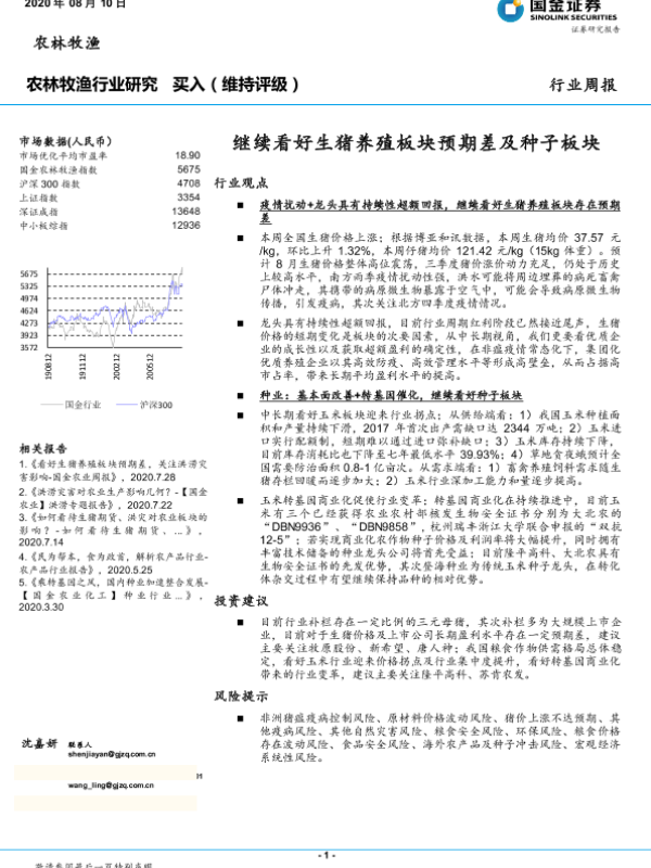 【国金证券】【20200810】20200810-国金证券-农林牧渔行业研究:继续看好生猪养殖板块预期差及种子板块-16页