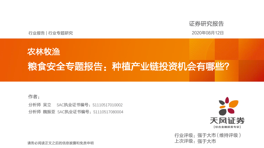 【天风证券】【20200812】20200812-天风证券-农林牧渔-粮食安全专题报告:种植产业链投资机会有哪些?-31页