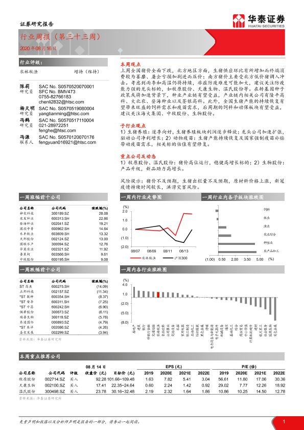 【华泰证券】【20200816】20200816-华泰证券-农林牧渔行业周报(第三十三周)-16页