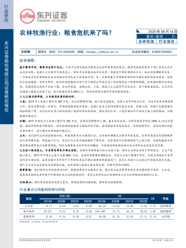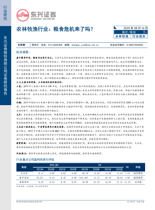 【东兴证券】【20200816】农林牧渔行业:粮食危机来了吗?-13页