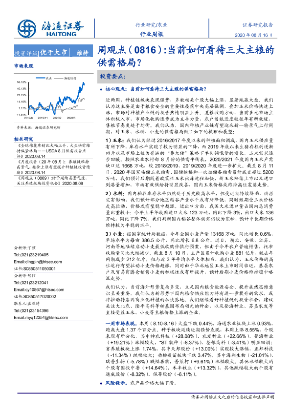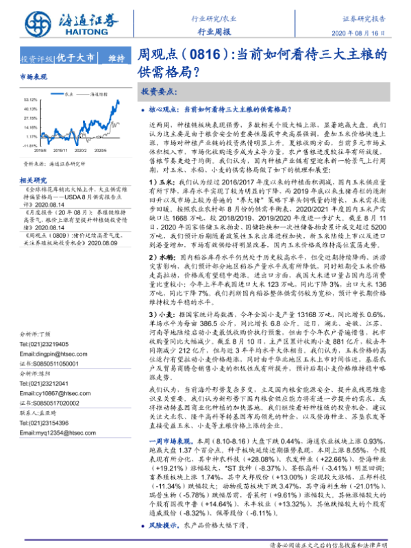 【海通证券】【20200816】20200816-海通证券-农业周观点:当前如何看待三大主粮的供需格局?-4页