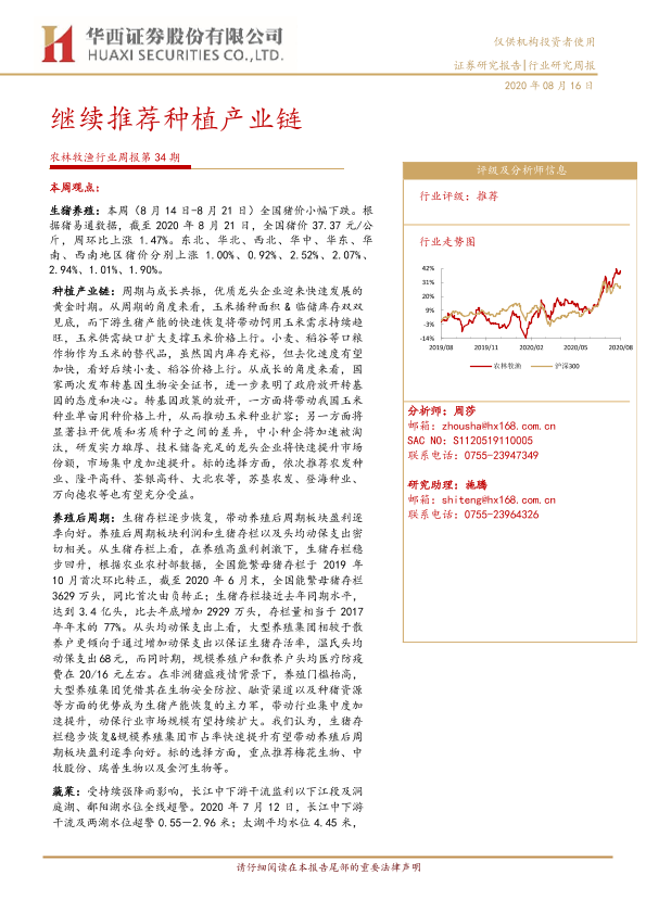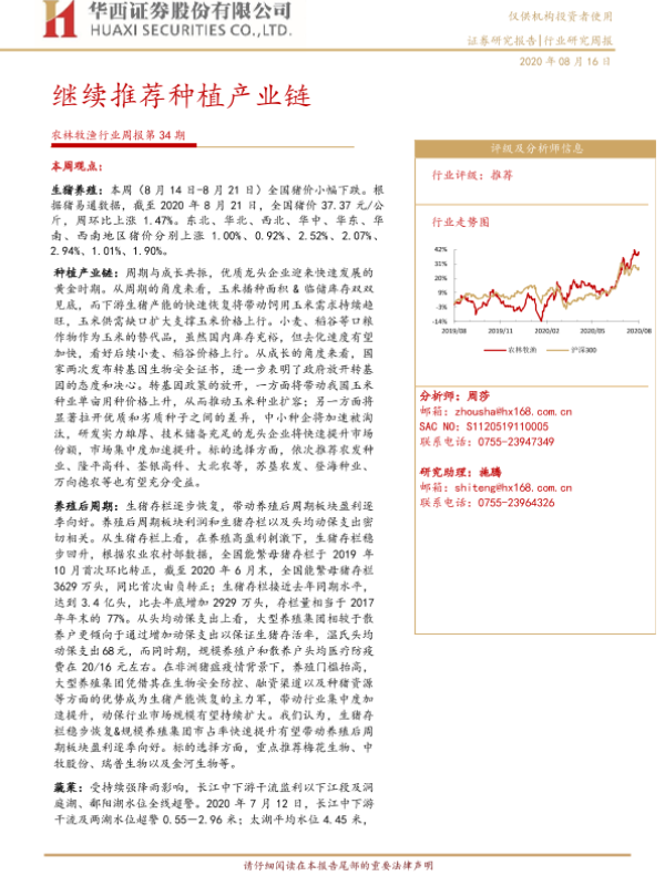 【华西证券】【20200816】20200816-华西证券-农林牧渔行业周报第34期:继续推荐种植产业链-22页