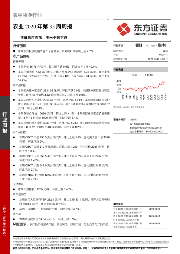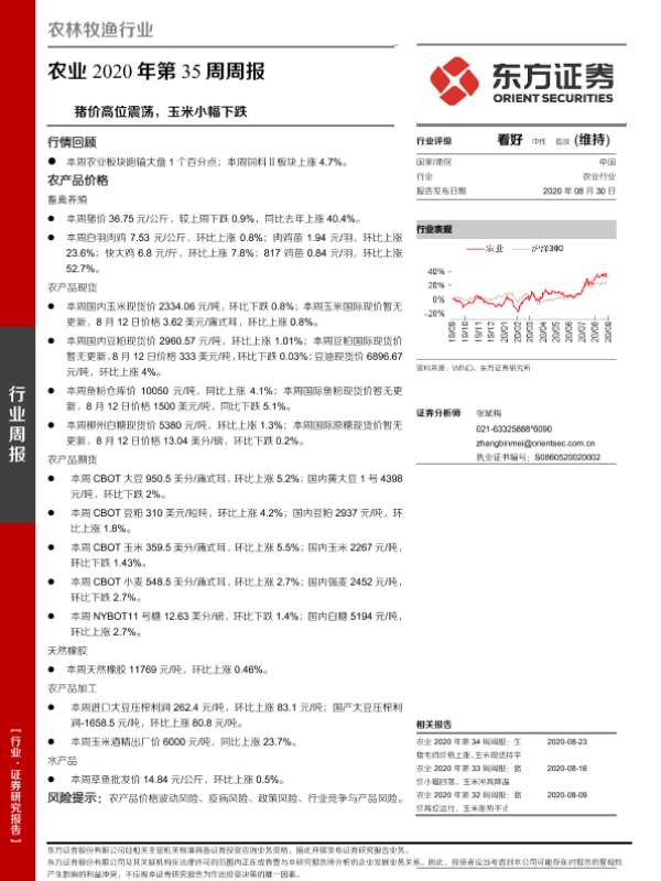 【东方证券】【20200830】农业2020年第35周周报:猪价高位震荡,玉米小幅下跌-17页