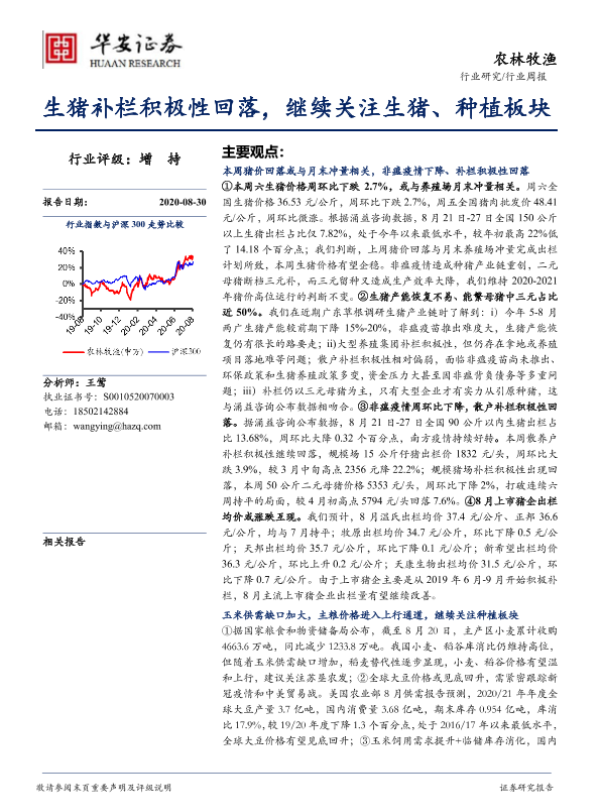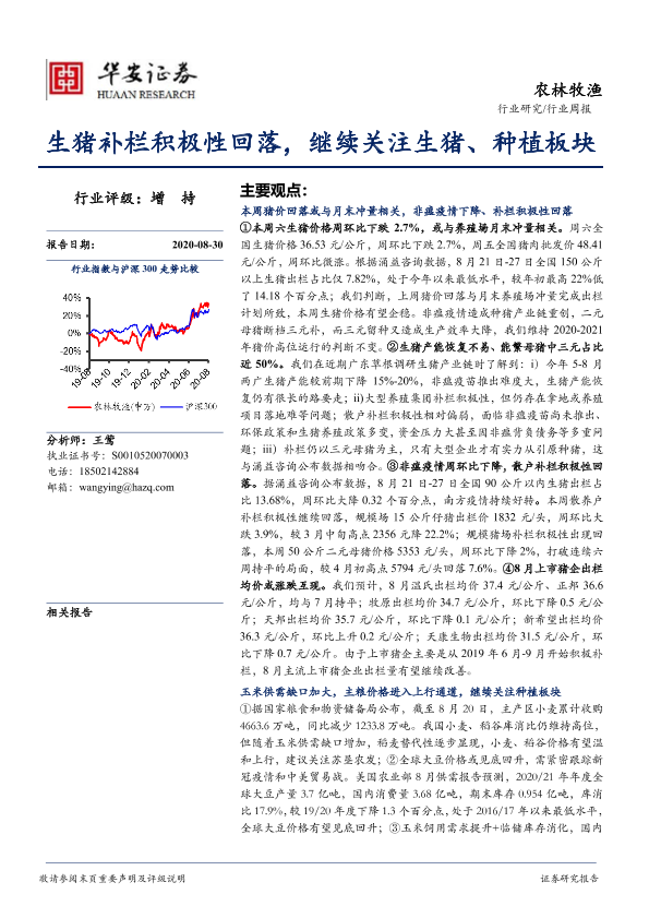 【华安证券】【20200830】20200830-华安证券-农林牧渔行业周报:生猪补栏积极性回落,继续关注生猪、种植板块-39页