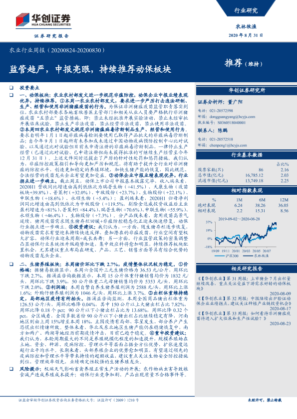 【华创证券】【20200831】20200831-华创证券-农业行业周报:监管趋严,中报亮眼,持续推荐动保板块-22页