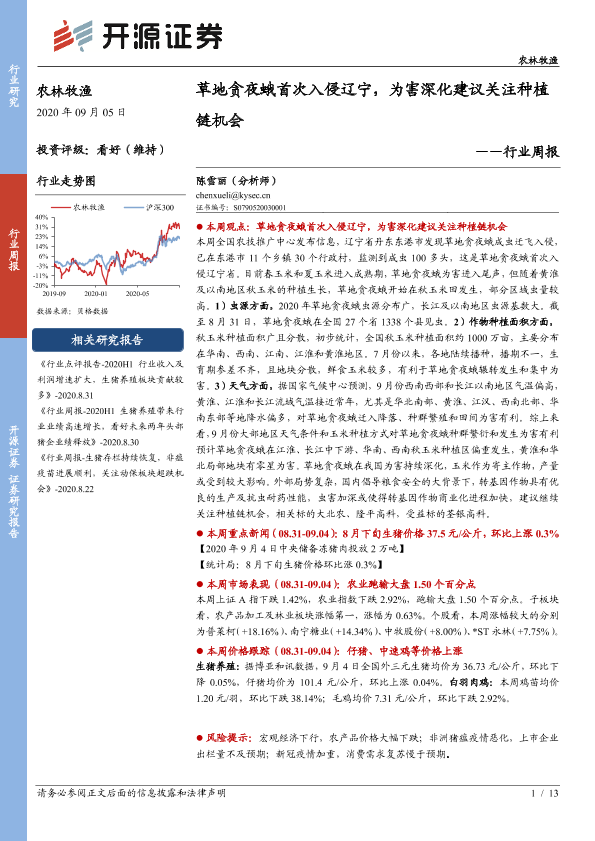 【开源证券】【20200905】农林牧渔行业周报:草地贪夜蛾首次入侵辽宁,为害深化建议关注种植链机会-13页