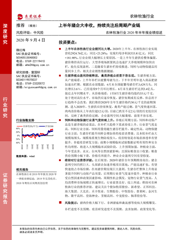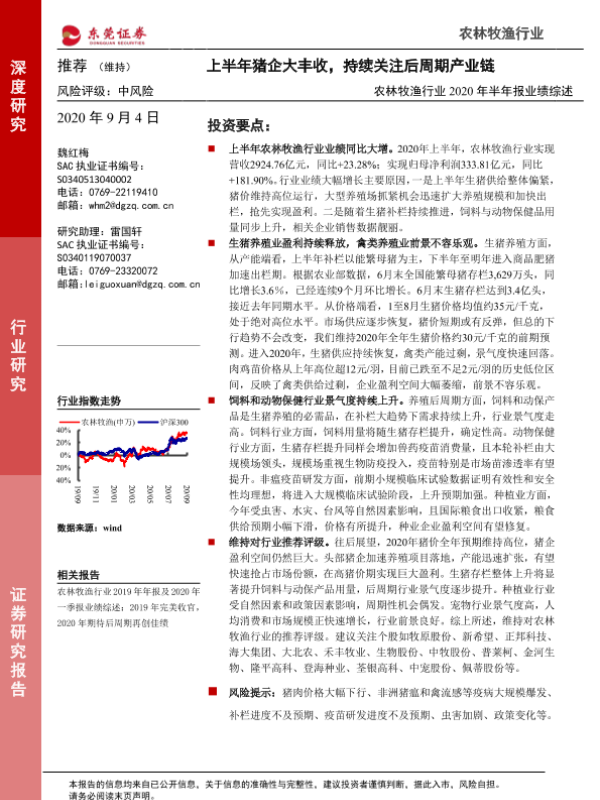 【东莞证券】【20200904】农林牧渔行业2020年半年报业绩综述:上半年猪企大丰收,持续关注后周期产业链-21页