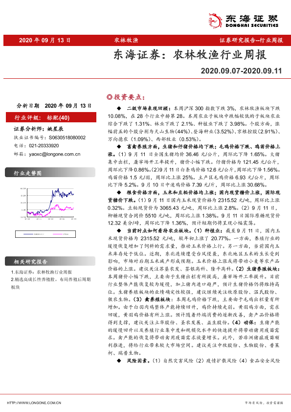 【东海证券】【20200913】20200913-东海证券-农林牧渔行业周报-9页