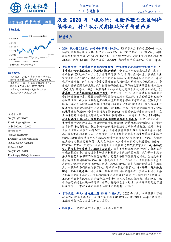 【海通证券】【20200901】农业2020年中报总结:生猪养殖企业盈利持续释放,种业和后周期板块投资价值凸显-21页