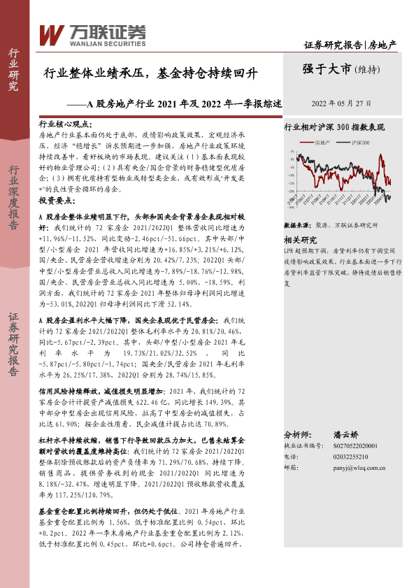 【万联证券】【20220527】A股房地产行业2021年及2022年一季报综述:行业整体业绩承压,基金持仓持续回升-20页