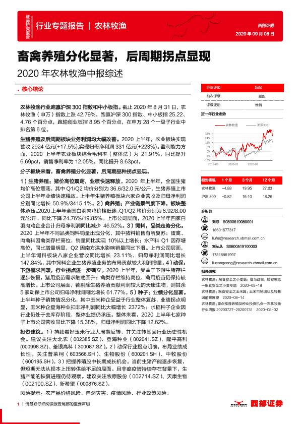 【西部证券】【20200908】2020年农林牧渔中报综述:畜禽养殖分化显著,后周期拐点显现-14页