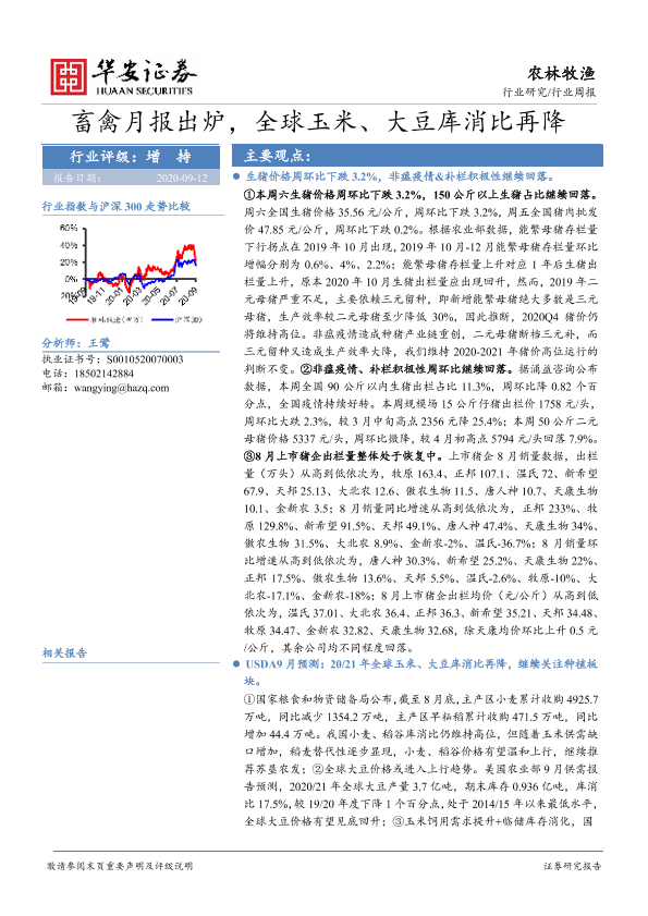 【华安证券】【20200912】20200912-华安证券-农林牧渔行业周报:畜禽月报出炉,全球玉米、大豆库消比再降-40页