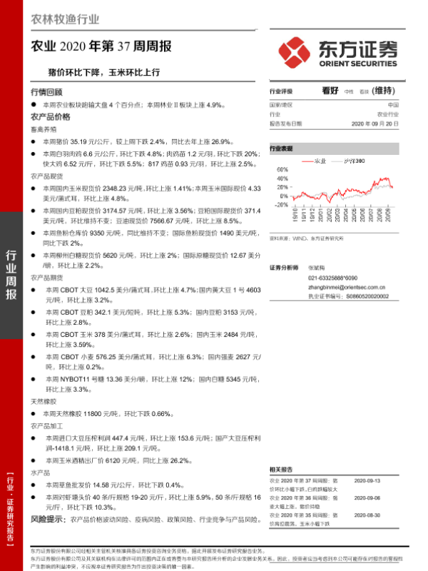 【东方证券】【20200920】农业2020年第37周周报:猪价环比下降,玉米环比上行-17页