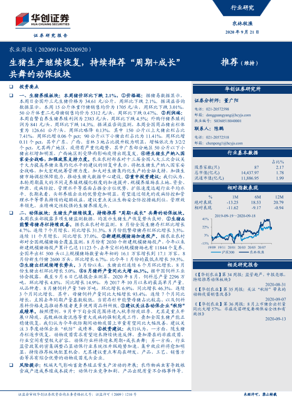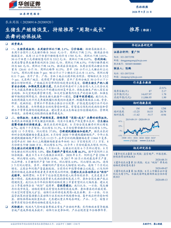 【华创证券】【20200921】20200921-华创证券-农业周报:生猪生产继续恢复,持续推荐“周期+成长”共舞的动保板块-23页