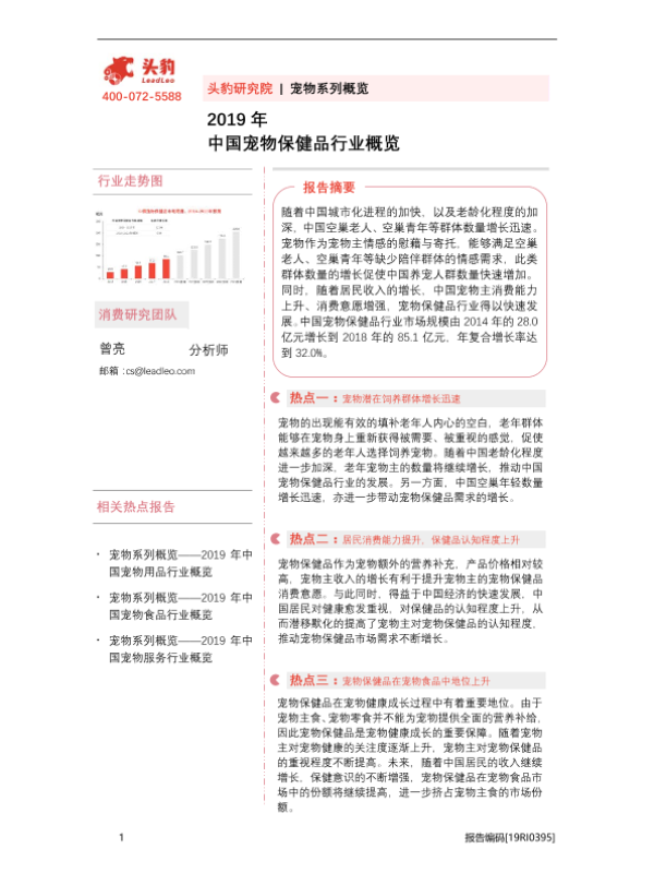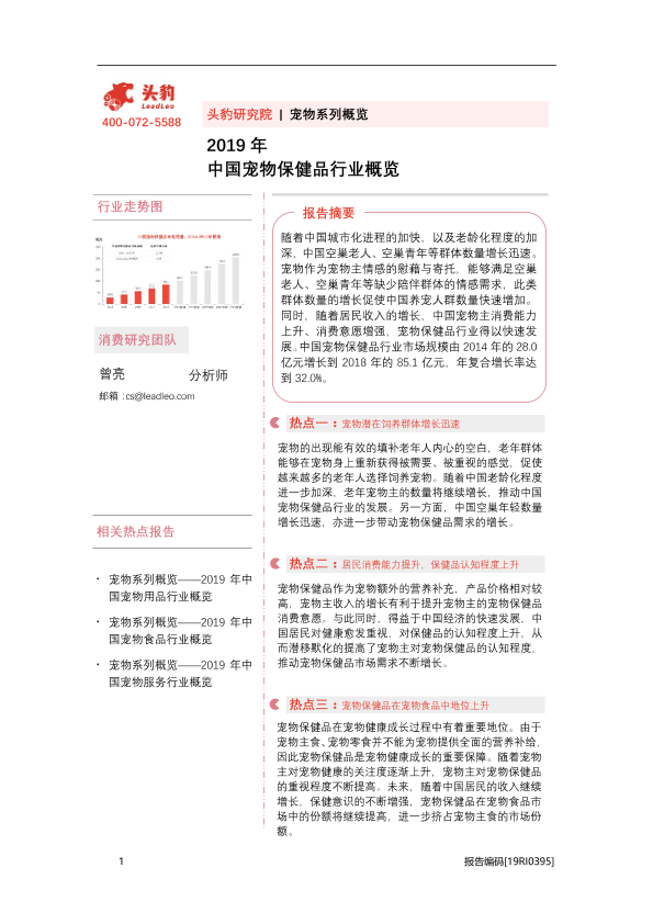 【头豹研究院】【20200923】2019年中国宠物保健品行业概览-33页