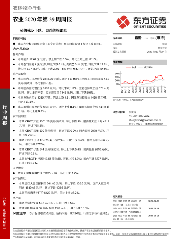 【东方证券】【20200927】农业2020年第39周周报:猪价稳步下跌,白鸡价格跟跌-17页