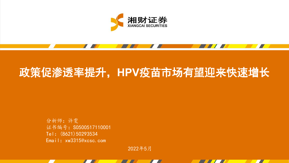 【湘财证券】【20220531】HPV疫苗行业:政策促渗透率提升,HPV疫苗市场有望迎来快速增长-32页