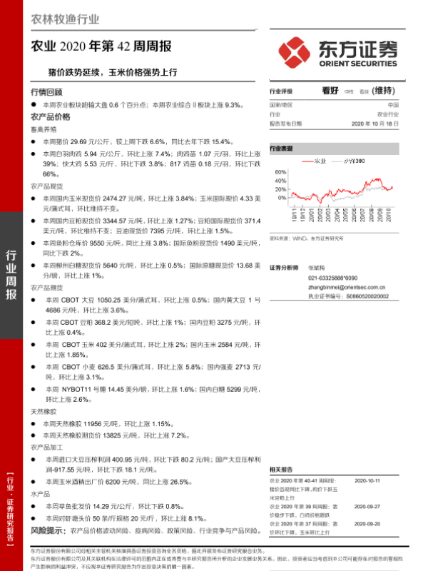 【东方证券】【20201018】农业2020年第42周周报:猪价跌势延续,玉米价格强势上行-17页
